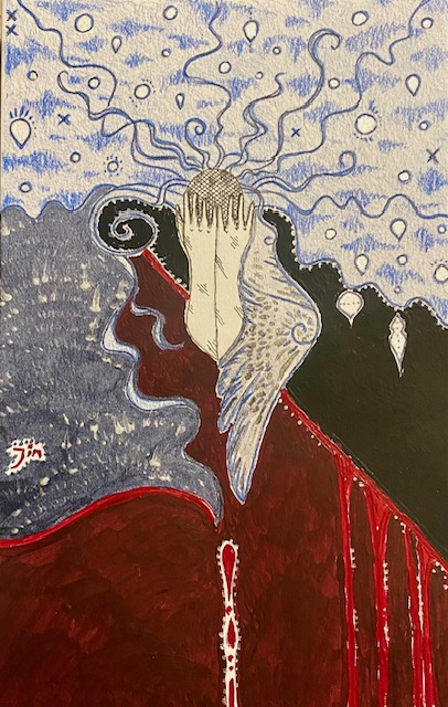 Round eyes and mouths for a round noun. If their moon were currently in phase, no doubt several tremulous lines of sight cast her way. Such a feat certainly within the realm of possibility. Features echoed in the faces of her children across many Houses. The blood of a story bears out in bone conduction no matter generations passed. Notten’s face is not their face, nor anyone’s here. His once warm low notes ice in his marrow. Two burls where his heart and voice should be. He tallies empty cups. Fingers in his hair. Something in the corner.